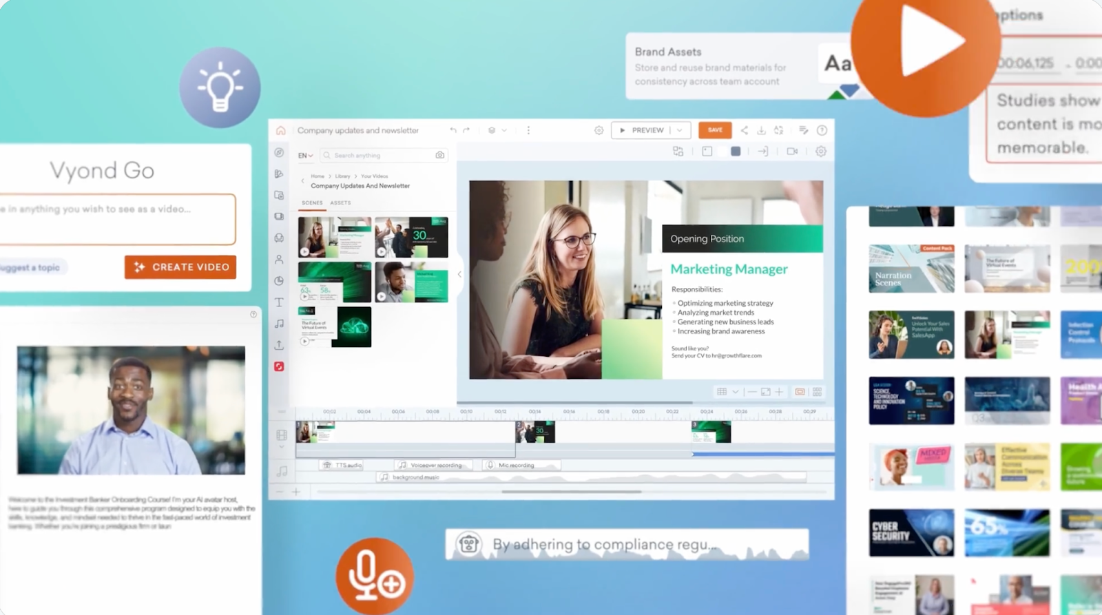 - Brand Studio: Customize your explainer video with designed layouts, smart transitions, and a consistent, on-brand look and feel.